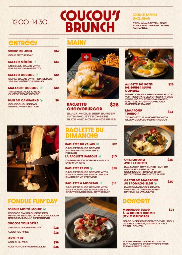 Every dish is carefully created for your optimum experience Indulge in some authentic Rosti – perfect with Sour Cream and toasty Cheese Raclette – and have your feast paired with some of our exceptional Swiss wines for optimum gratification.